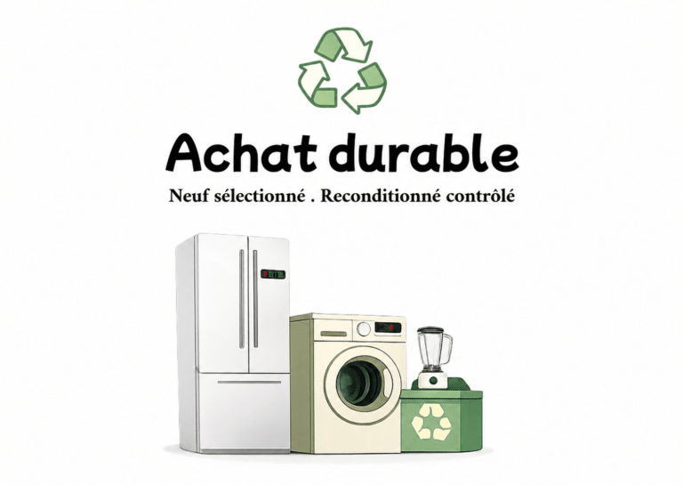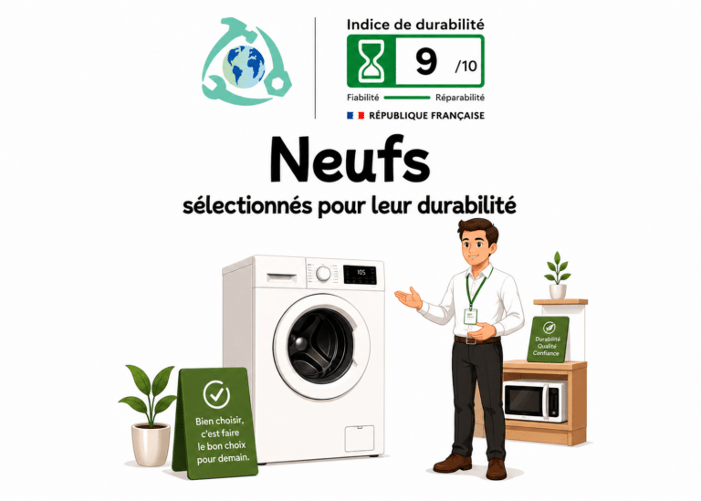 Dans notre espace magasin, retrouvez des appareils neufs garantis jusqu’à 5 ans, choisis pour leur qualité et leur réparabilité, ainsi qu’une large gamme d’appareils reconditionnés, jusqu’à 60 % moins chers que le neuf et garantis jusqu’à 2 ans.