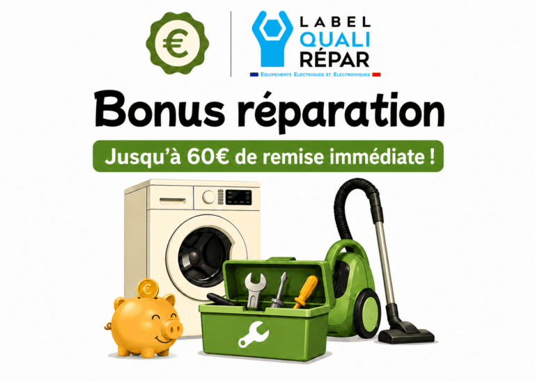 Le Bonus Réparation est une mesure mise en place par l’État dans le cadre de sa politique de durabilité et de lutte contre l’obsolescence programmée. Il vise à encourager les consommateurs à faire réparer leurs produits plutôt que de les jeter et d’en acheter de nouveaux. Grâce à ce bonus, vous pouvez obtenir une aide financière allant jusqu’à 60€ ttc pour la réparation de vos produits électroniques et électroménagers.